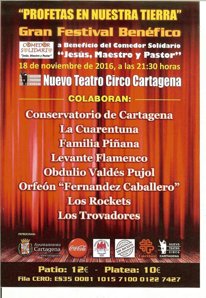 El 18 de noviembre a las 21:30 en el Nuevo Teatro Circo de Cartagena, la sección titular colaborará en el Festival Benéfico organizado por Los Rockets a beneficio del comedor solidario “Jesús, Maestro y Pastor”