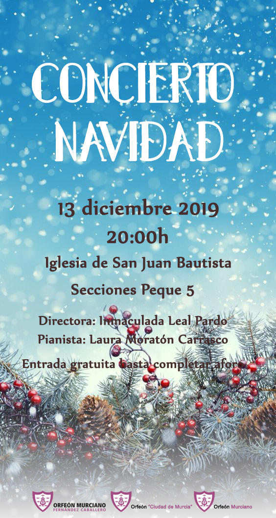 La sección Peque 5 dará un Concierto de Navidad en la Iglesia de San Juan Bautista el viernes 13 a las 20:00h. No os podéis perder a nuestra sección más joven porque son unos auténticos artistas! La entrada es gratuita hasta completar aforo. La directora del concierto será Inmaculada Leal y como pianista Laura Moratón Carrasco.