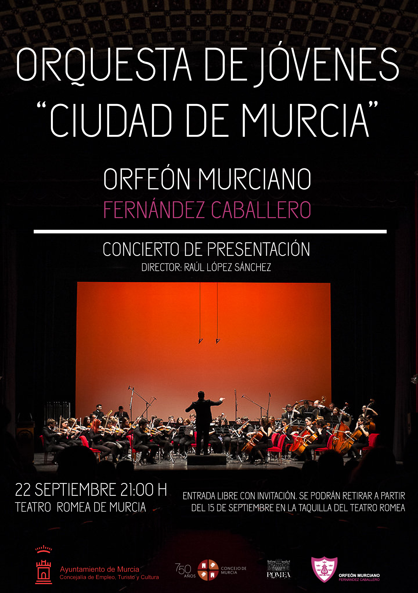 Nace la Orquesta de Jóvenes “Ciudad de Murcia” cuya presentación oficial será el próximo 22 de septiembre a las 21:00 con entrada gratuita. Las entradas podrán retirarse a partir del 15 de septiembre en la taquilla del Teatro Romea