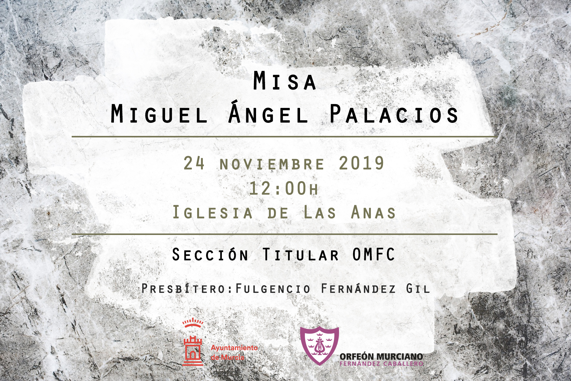 El domingo 24 de noviembre a las 12:00h en la iglesia de Las Anas se oficiará una misa por el Presbítero Fulgencio Fernández Gil, donde la sección Titular del Orfeón Murciano Fernández Caballero estrenará por primera vez en Murcia la Misa de Miguel Ángel Palacios.